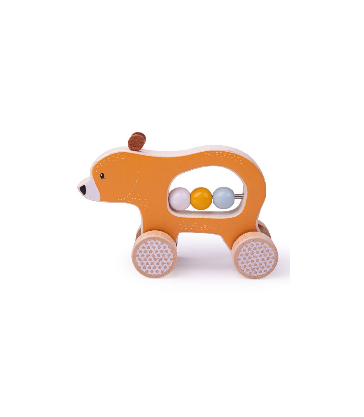 This wooden bear on wheels rolls through the room and gets your child moving!