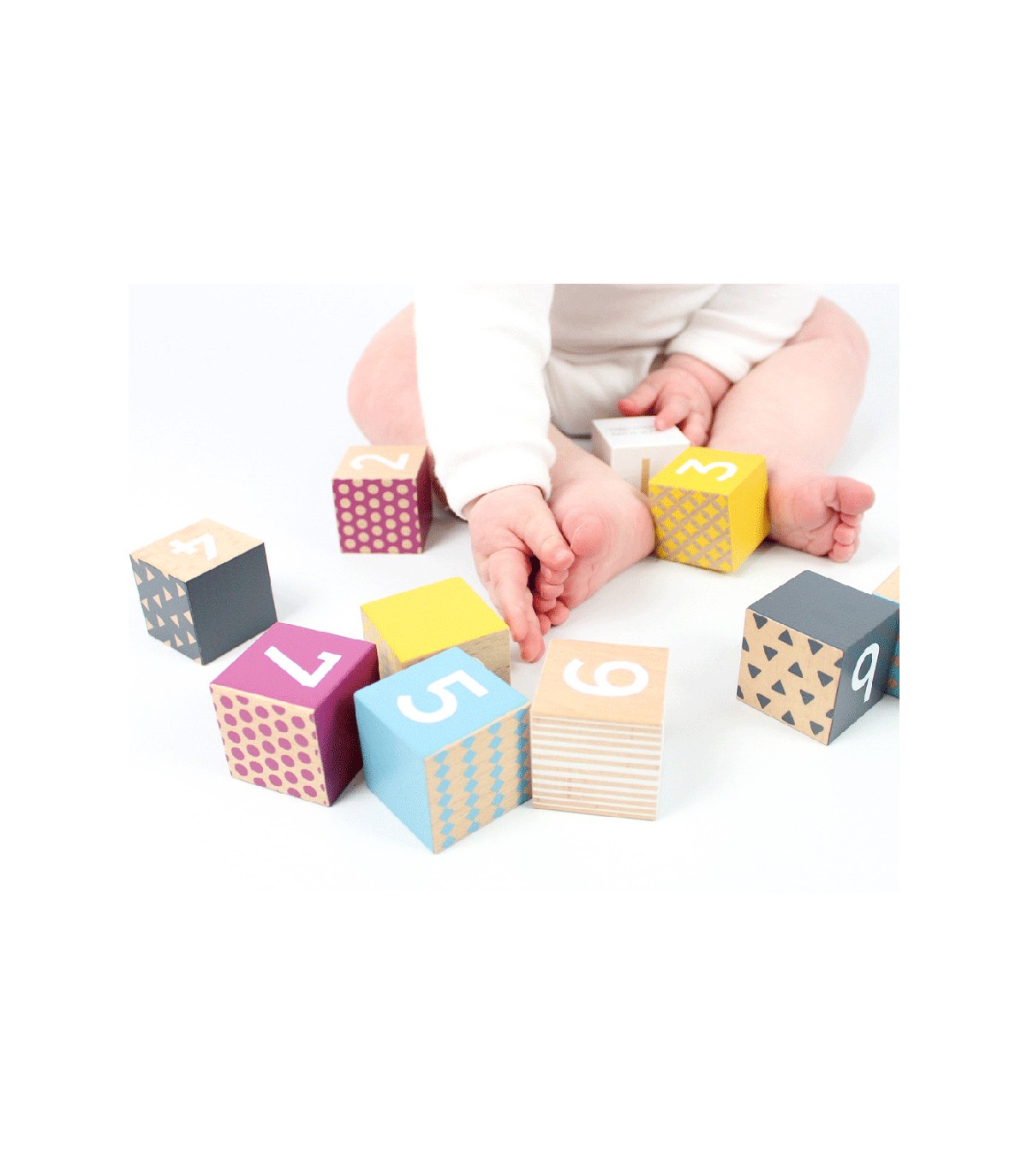 These lightweight wooden blocks have beautiful, bright colors and various patterns. Young children develop their fine motor skills by stacking the blocks. Playing with the number blocks is also a fun way for children to learn to count as they get older.