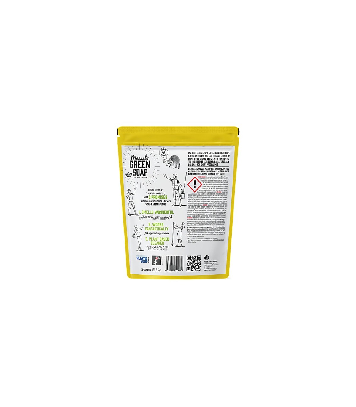 Like all Marcel's Green Soap products, these dishwasher capsules are 100% vegan , not tested on animals and free from dyes, parabens, phosphates, chlorine, ammonia and acids .