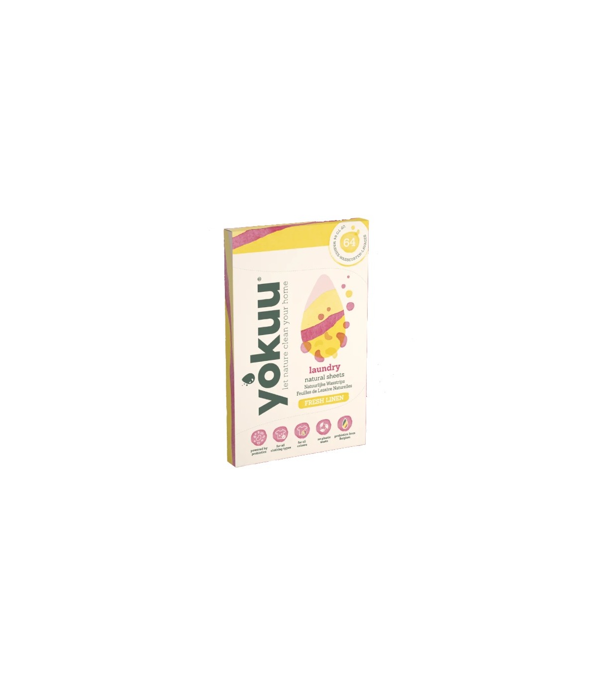 Yokuu's natural laundry strips (also known as detergent wipes) give your laundry an extra deep clean. Suitable for all types of laundry and temperatures. Completely plastic-free! With the scent of fresh linen.