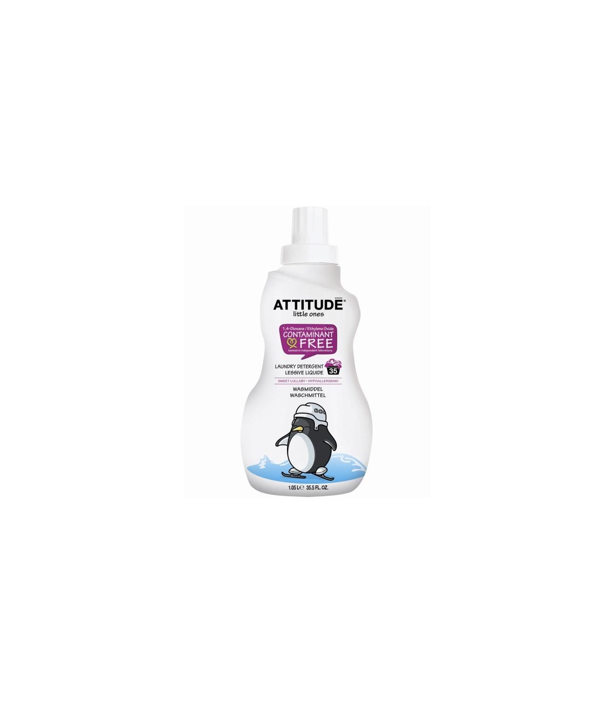 Attitude liquid laundry detergent. Fragrance-free and hypoallergenic. Good for 35 washes! Capacity: 1.05 L