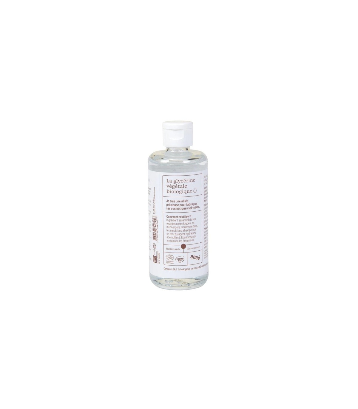 Anaé glycerol is certified according to the COSMOS natural standard, highly pure, and derived from organic mustard processing, guaranteed free of genetic modification. A perfect product for making your own cosmetics.