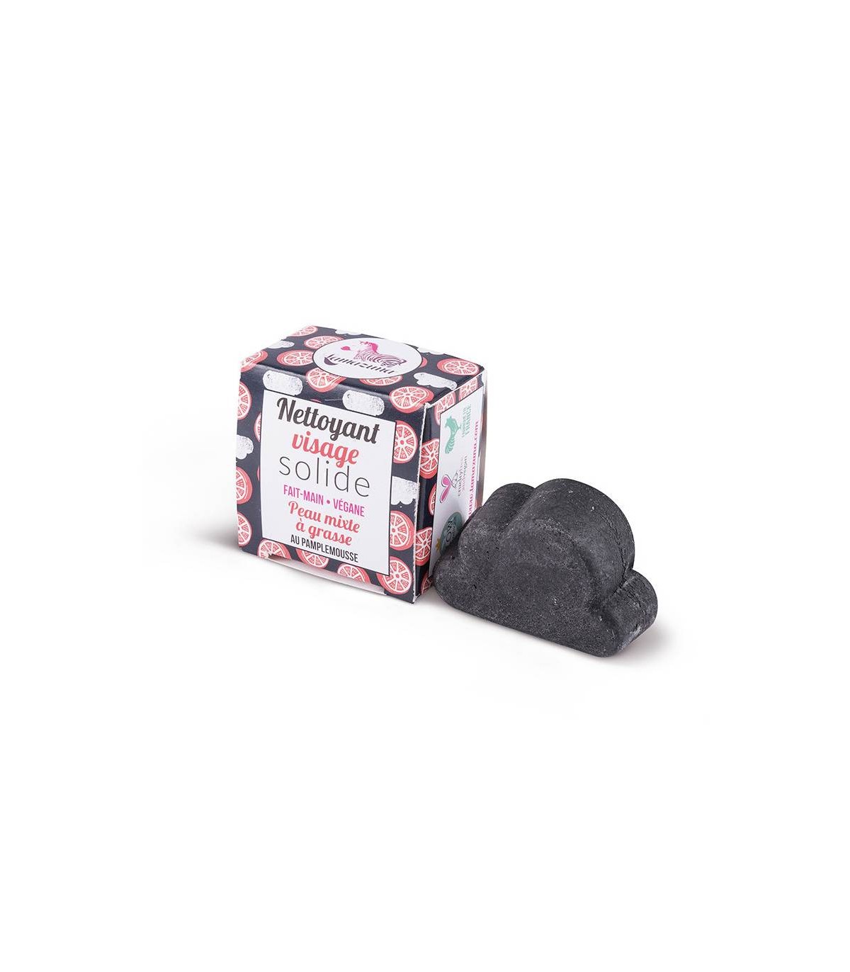 Handmade, solid block facial cleanser with grapefruit and charcoal for oily skin. This facial cleanser cleanses and refreshes the skin. You can use it both morning and night. The formula removes impurities and excess sebum, and unclogs pores.