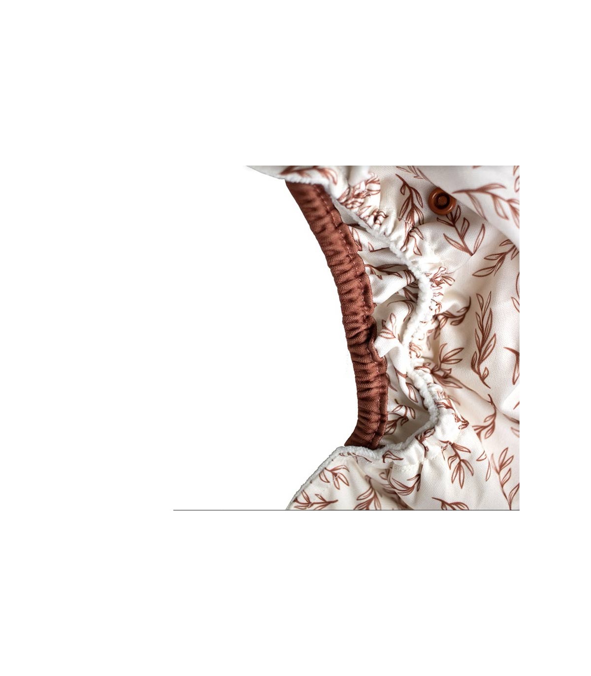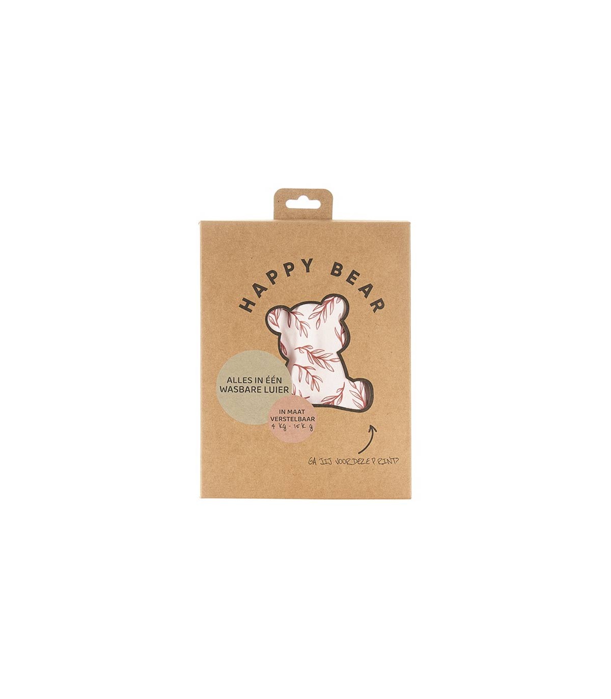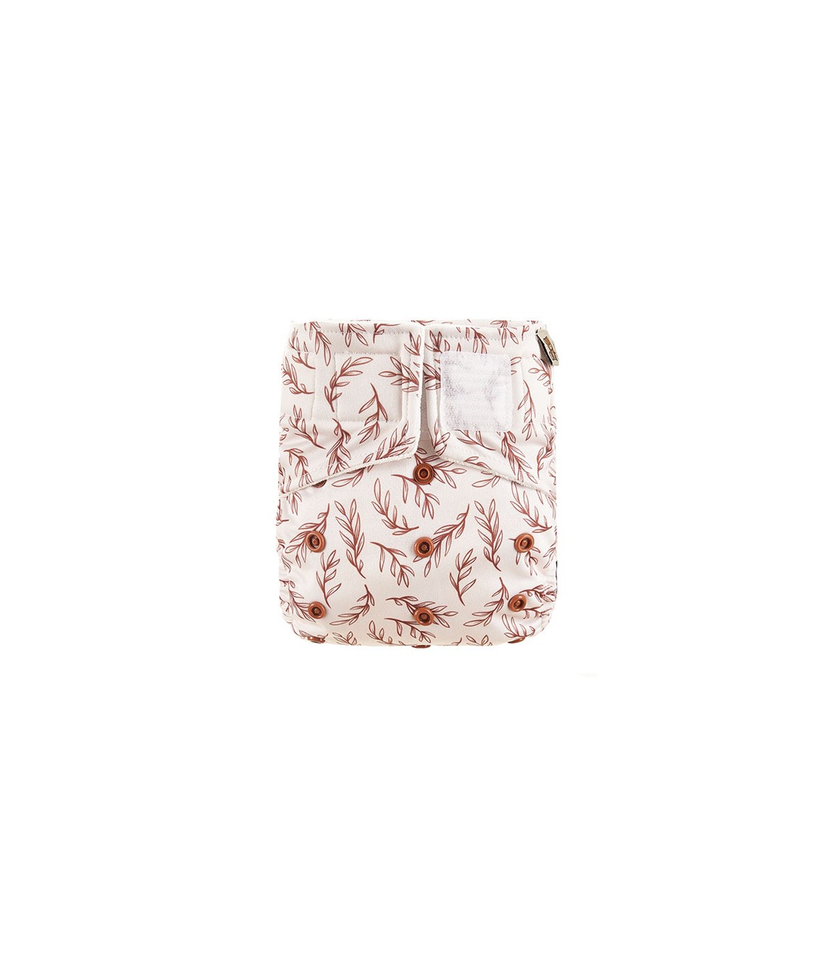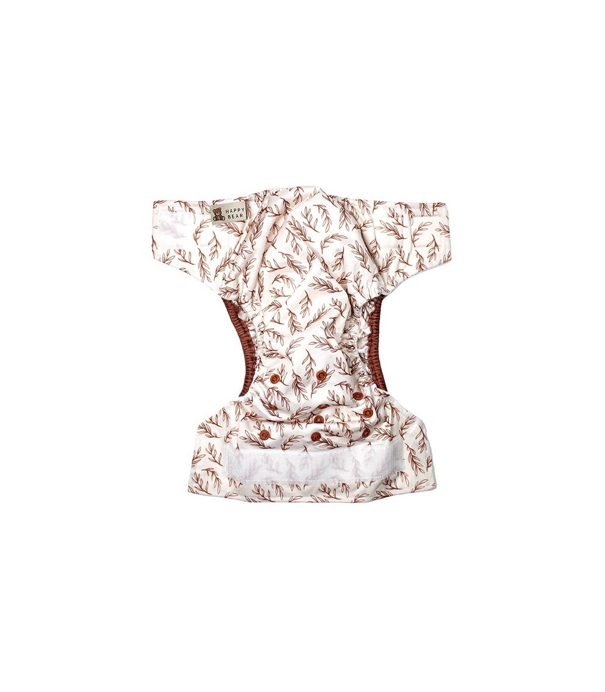 Cloth diapers are back. This cream-colored HappyBear All-in-One diaper with a twig motif is just as easy to use as a disposable. The hook-and-loop closure makes changing a breeze! The snaps on the front adjust the diaper's size, making it suitable for use from birth through potty training. It's so convenient and easy on your wallet, too.