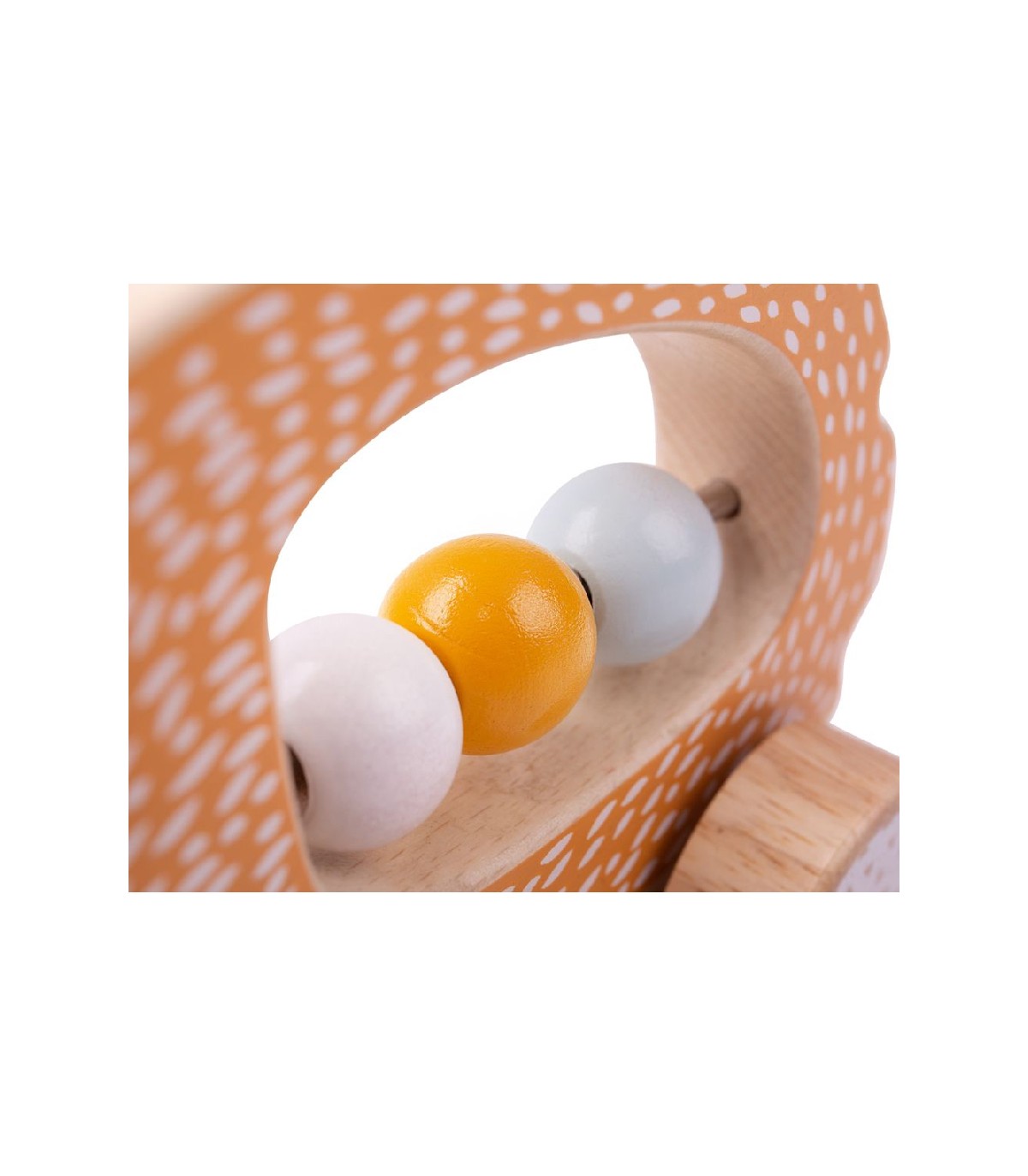 De egel heeft mooie zachte kleuren en drie kralen waarmee kinderen leren tellen. De houten figuur is stevig en kan goed tegen een stootje. De egel heeft vilten oortjes waardoor kinderen kennismaken met verschillende structuren.
