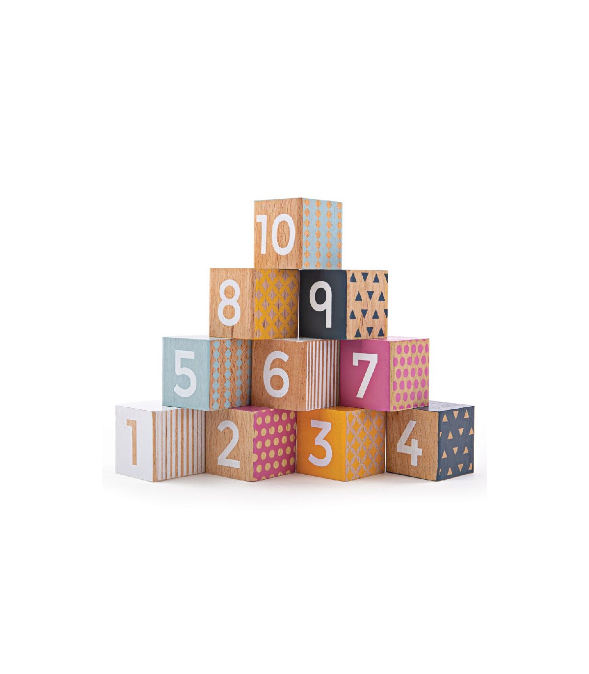 Deze lichte houten blokken hebben mooie heldere kleuren en verschillende patronen. Jonge kinderen ontwikkelen hun fijne motoriek door de blokken te stapelen. Spelen met de cijferblokken is ook een leuke manier om kinderen te leren tellen als ze wat ouder zijn.