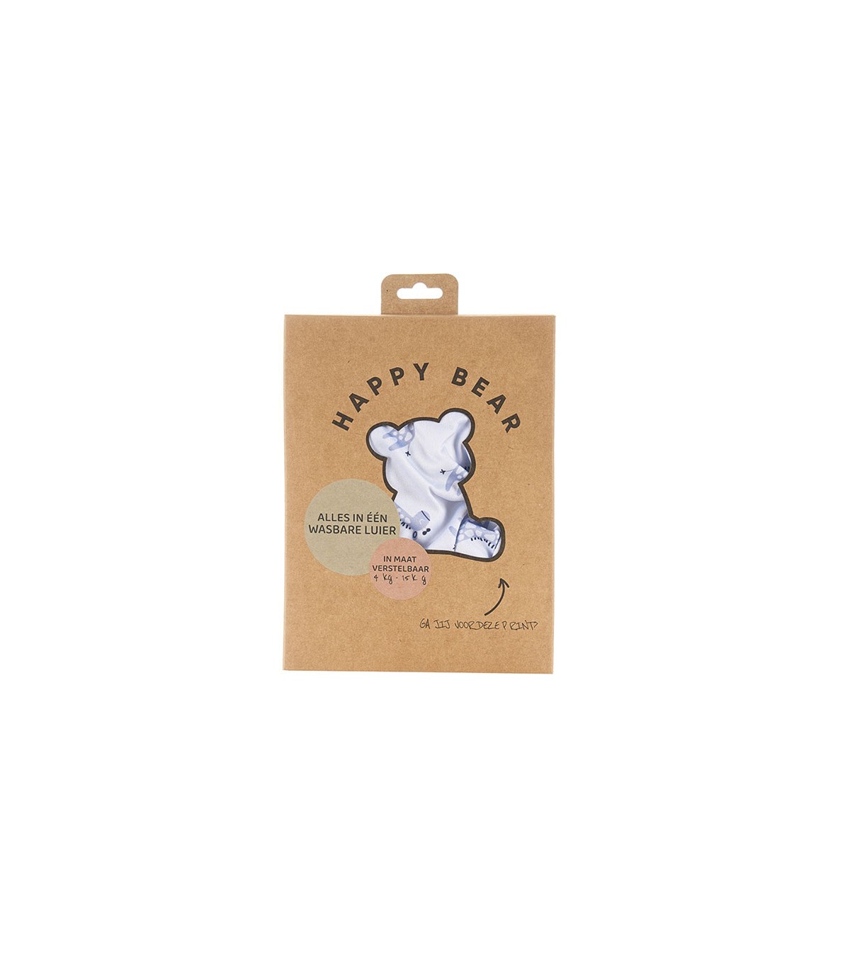 Wasbare luiers zijn terug van weggeweest. Deze lichtblauwe All-in-One luier van HappyBear met giraffenprintje is net zo eenvoudig in gebruik als een wegwerpluier. Door de klittenbandsluiting is het verschonen zo gedaan! Met de drukknopen aan de voorkant verstel je de maat van de luier, waardoor deze te gebruiken is vanaf geboorte tot aan zindelijkheid. Wel zo makkelijk en ook nog eens fijn voor je portemonnee.