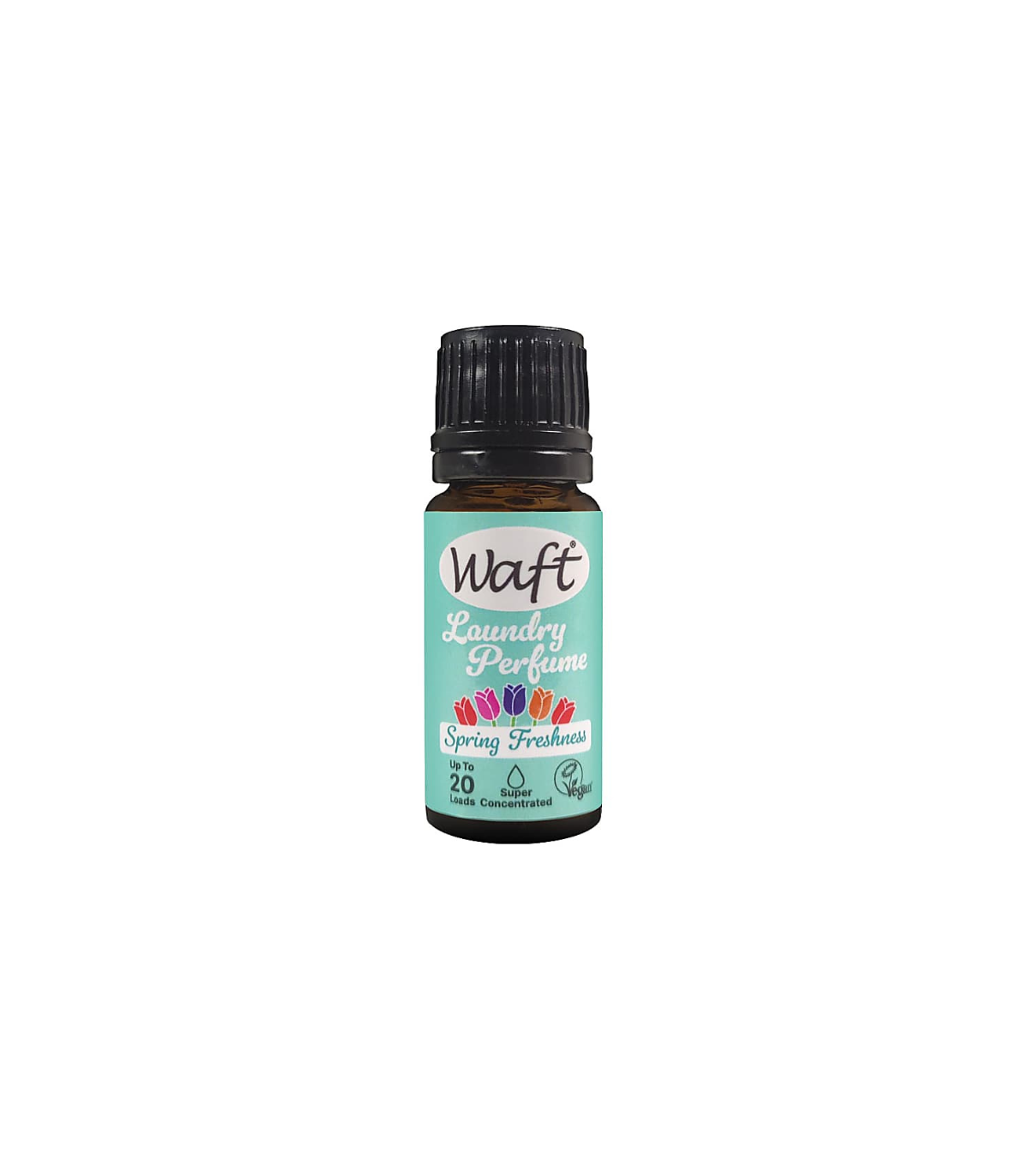 Waft geconcentreerde wasparfum, met frisse lentebriesgeur, is een uniek, natuurlijk product en een prachtig alternatief voor geparfumeerde wasmiddelen en wasverzachters. De combinatie van natuurlijke geuroliën zorgt ervoor dat je kleding heerlijk en fris ruikt. Waft Laundry Parfums vermindert de behoefte aan grote plastic flessen en vermindert plastic afval in vergelijking met conventioneel vloeibaar wasmiddel en wasverzachter.
