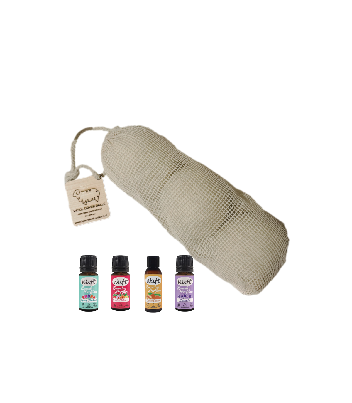 Waft Wasparfum + Wollen Wasballen = duurzaam fris en zacht.