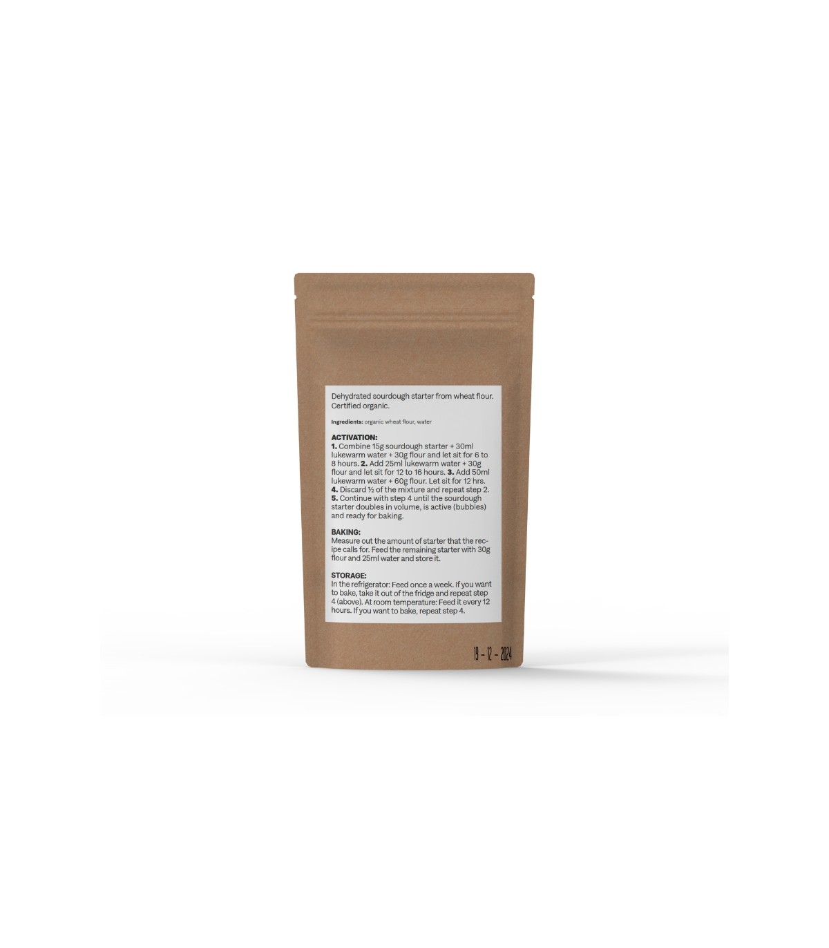 De gedroogde starter wordt geleverd met duidelijke uitleg over: